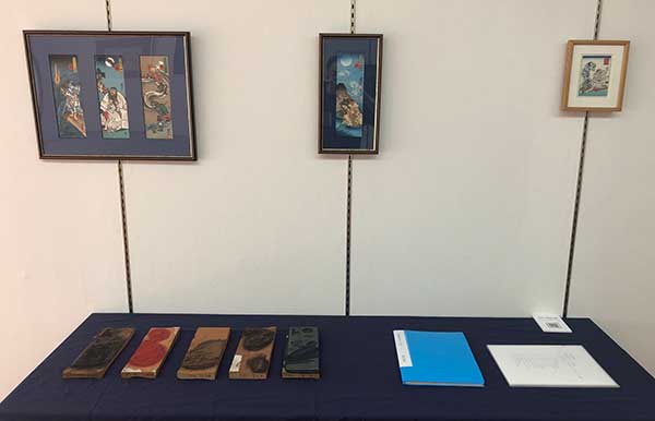 北村木版画工房が制作した浮世絵の縮小版の版画・版木も展示。